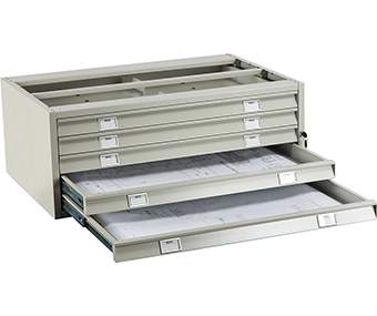 Предназначается для надежного хранения различных документов формата A0 (планы, карты, конструкторские чертежи), дополнительно в ящик можно установить разделители, которые используются для того чтобы было удобно хранить документы других форматов: A1,A2, A3, A4 (опция);